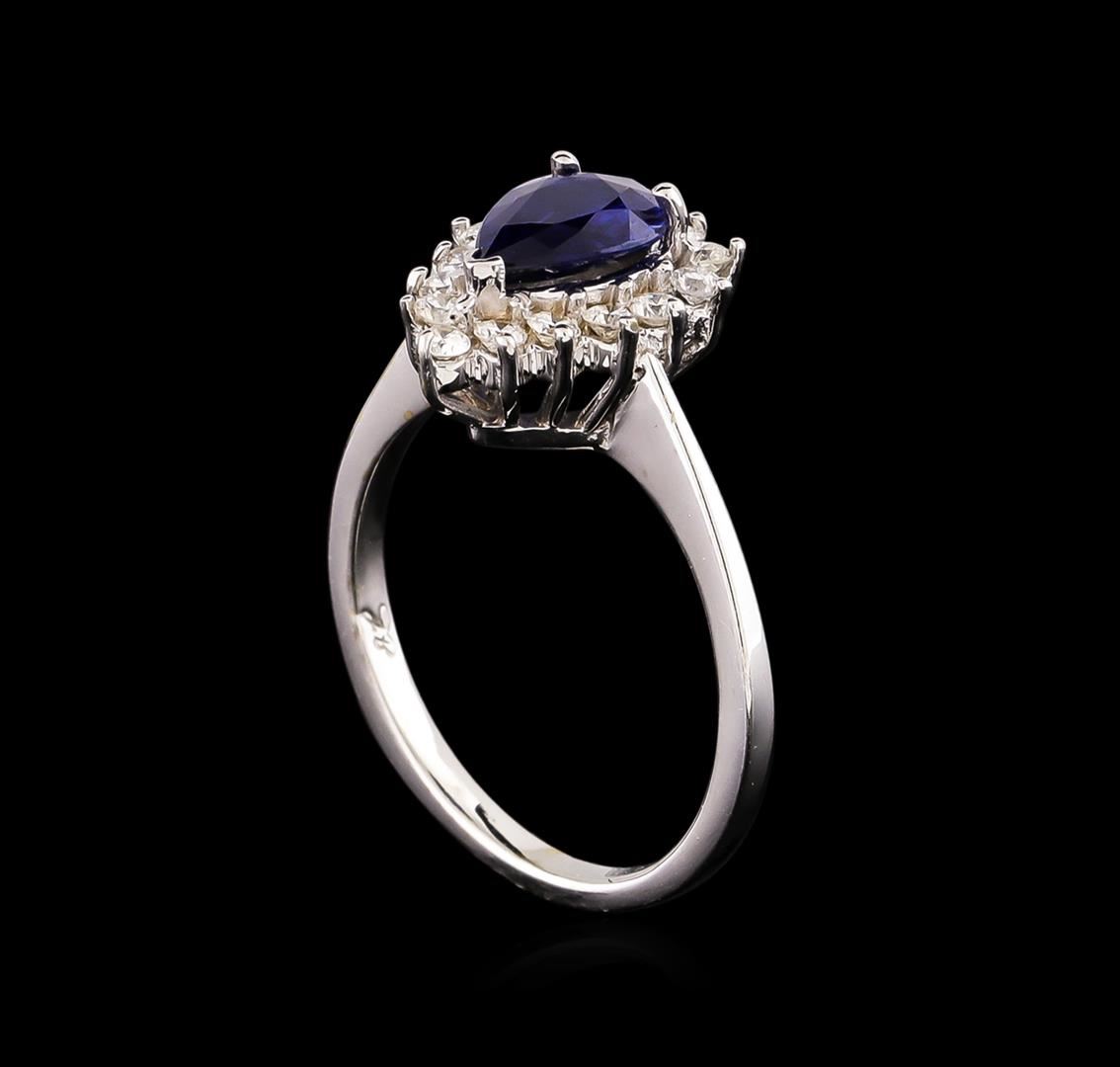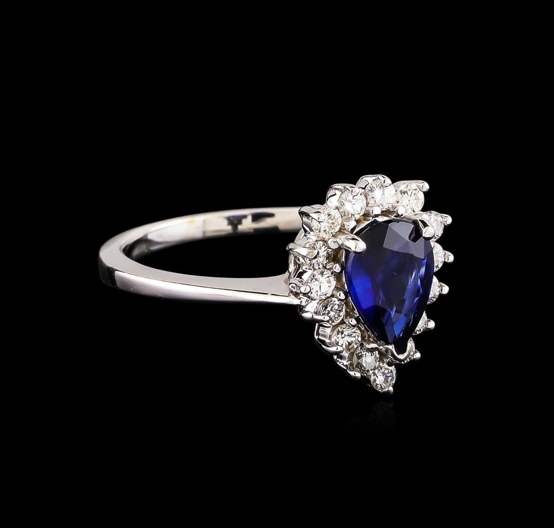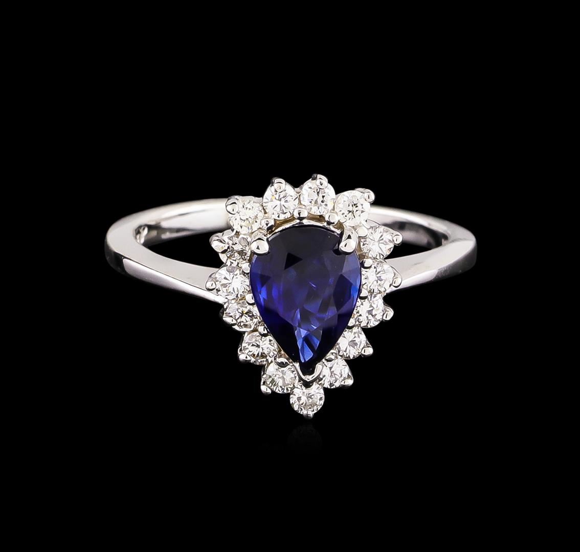 One ring featuring: 18KT white gold weighing 4.20 grams containing one blue sapphire center stone with an approximate total weight of 1.25ct and diamonds with an approximate total weight of 0.39ct.