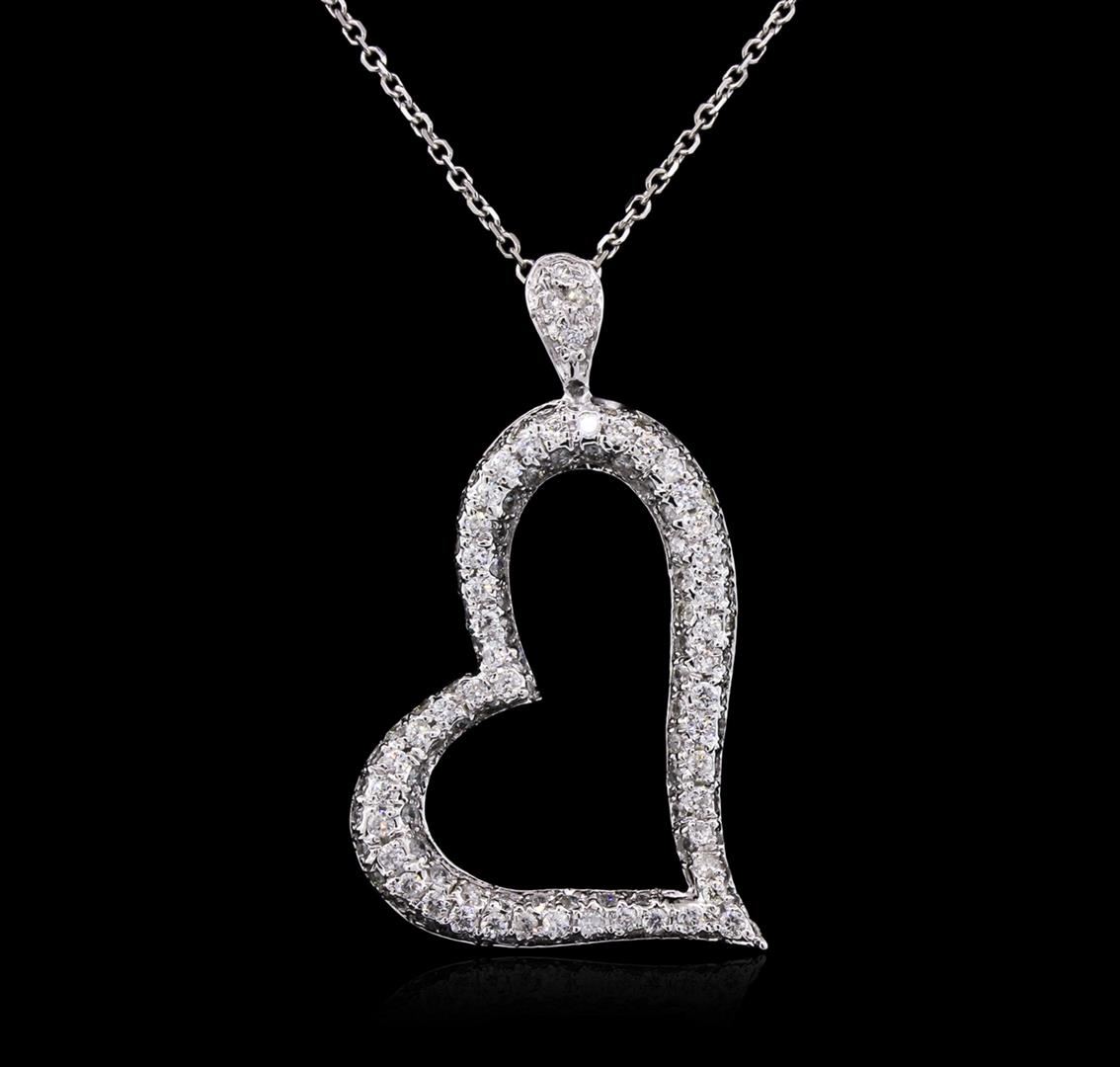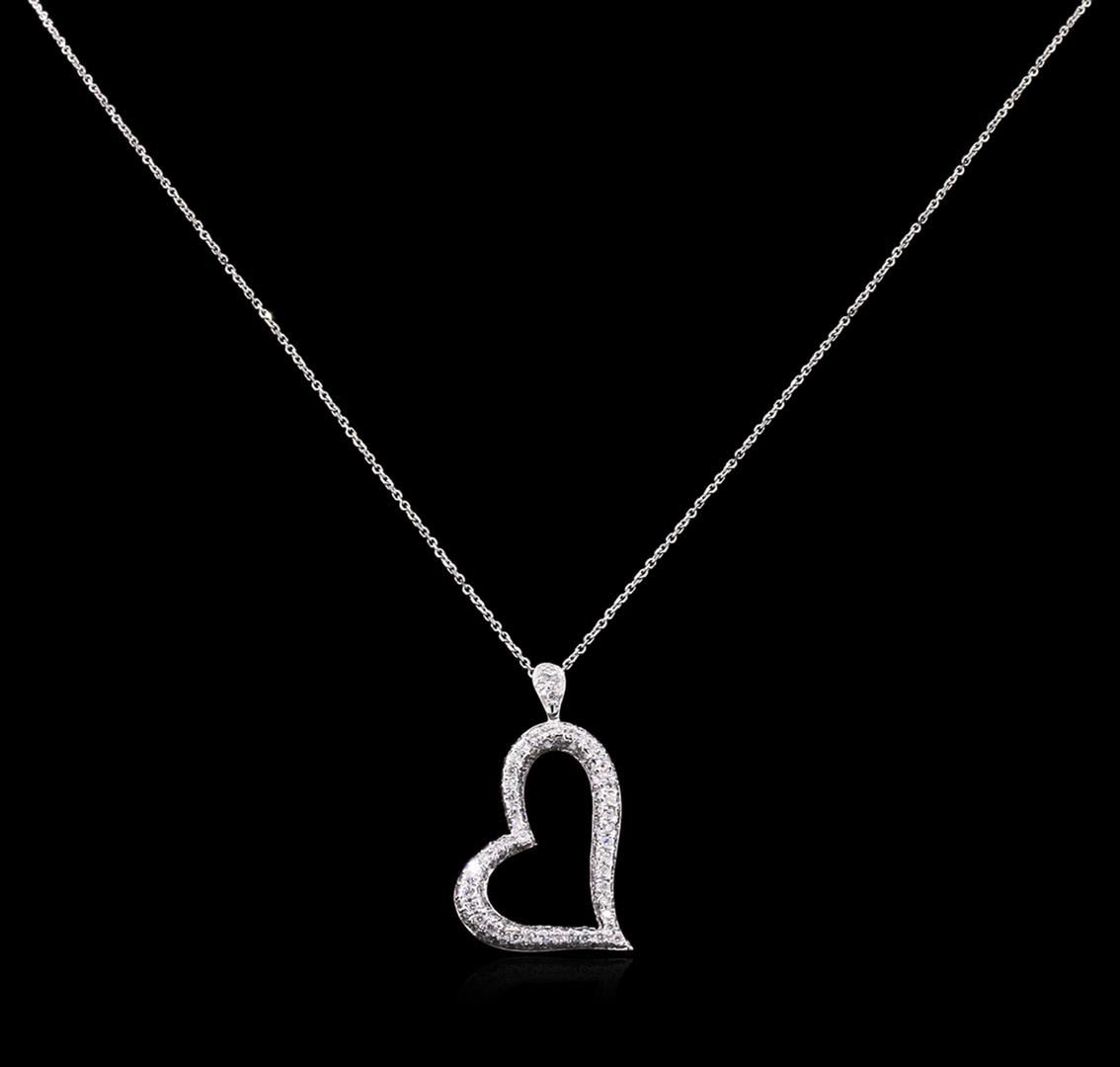 One electronically tested 14KT white gold lady's cast heart shape pendant & chain 18.0" long, 1mm diamond cut cable link with a spring ring clasp with a bright polish finish. Identified with markings of "14K". Condition is new, good workmanship. Containing: One Hundred Thirty prong set round brilliant cut diamonds, measuring 1.40 - 1.30 x 0.86mm (depth est.) approximate total weight of 130 Stones = 1.25ct. Graded in the setting. Clarity: SI-1 to I-1. Color: H - I. Cut Good. Total Weight of Diamonds 1.25ct. Total Weight of Pendant & Chain 5.90gm. GAS Appraised at $4,375.00.
