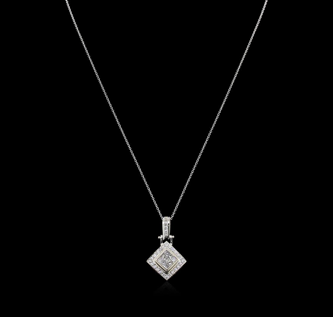 One pendant with chain featuring: 14KT white gold weighing 4.86 grams containing pave set round diamonds and channel set princess cut diamonds with a total weight of 1.25ct.