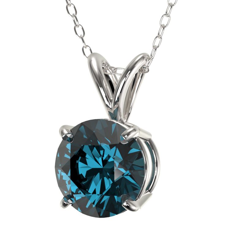 REF-240M2H -36787 ---- 1.26 CTW Certified Intense Blue SI Diamond Solitaire Necklace 10K White Gold ---- Luxury Designer Brand Necklace Appraised at $17,600 Certificate Number US36787 10k White gold, Necklace Size is 16 Incehs, Necklace measuring approx. Uniform, weighing in total approx. 2 grams. Made in the USA and is stamped 10k, Main stone 1.26 carat total weight containing 1 pieces of Intense Fancy Blue color with SI quality Round shape cut Diamond , Stone #2 carat total weight containing pieces of color with quality shape cut