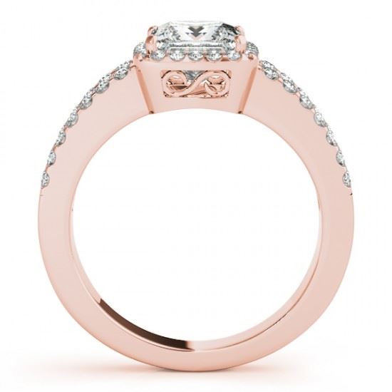 1.26 CTW Certified VS/SI Princess Diamond Solitaire Halo Ring 18K Rose Gold ---- Luxury Designer Brand Ring Appraised Retail Price at $12,200 ---- SKU Number US27136 18k Rose gold Ring Size is 7, Ring measuring approx. Uniform, weighing in total approx. 6.5 grams. Made in the USA and is stamped 18k, Main stone 0.75 carat total weight containing 1 pieces of H-J color with VS/SI quality Princess shape cut Diamond , Stone #2 0.51 carat total weight containing 44 pieces of H-I color with VS/SI quality Round shape cut