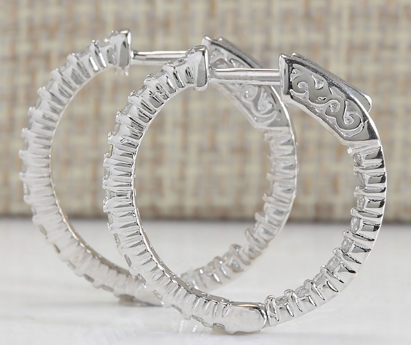 1.26 CTW Natural Diamond Hoop Earrings In 14K White Gold