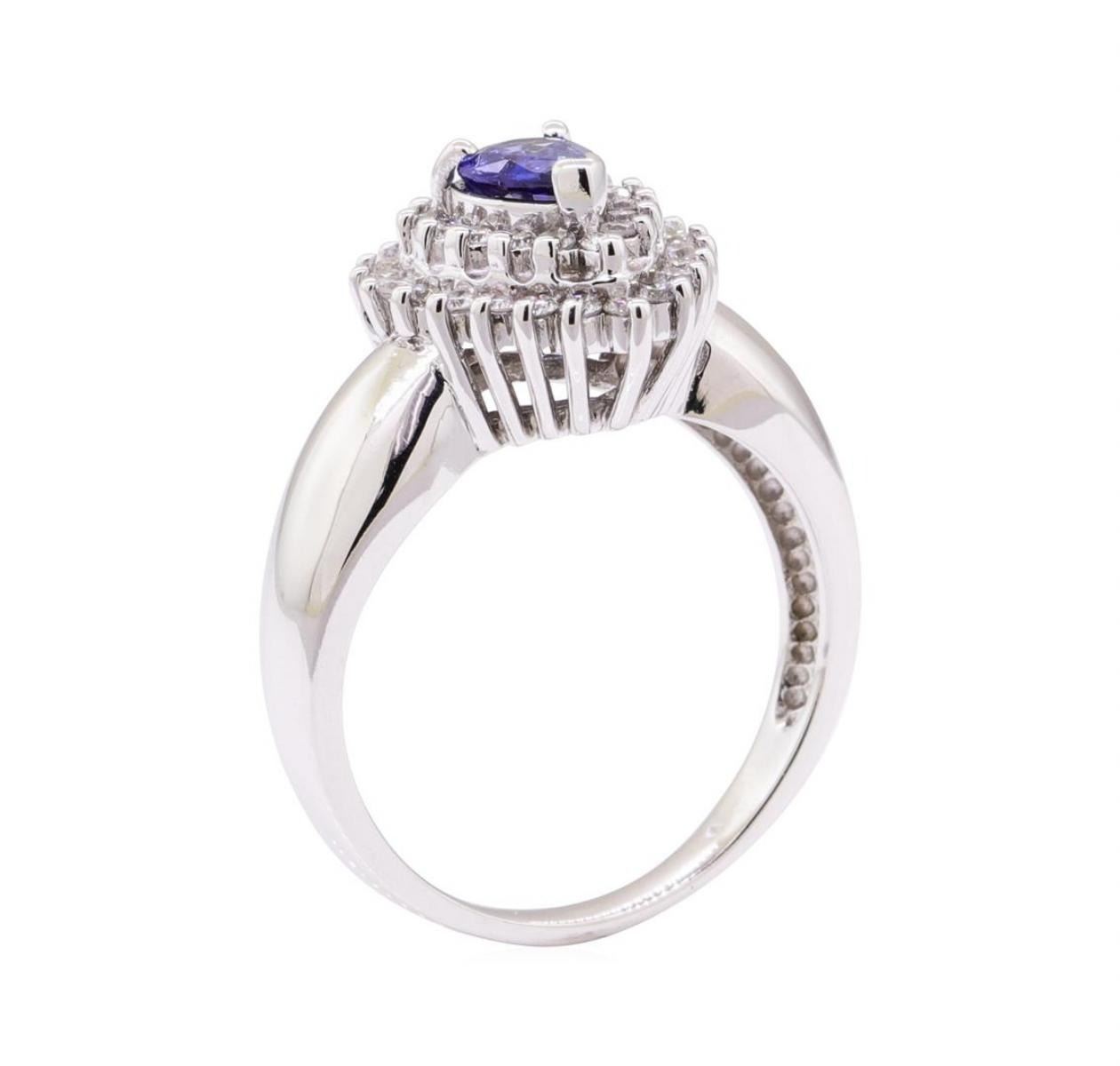 One 1.26ctw Blue Sapphire and Diamond Cluster Ring - 14KT White Gold.
