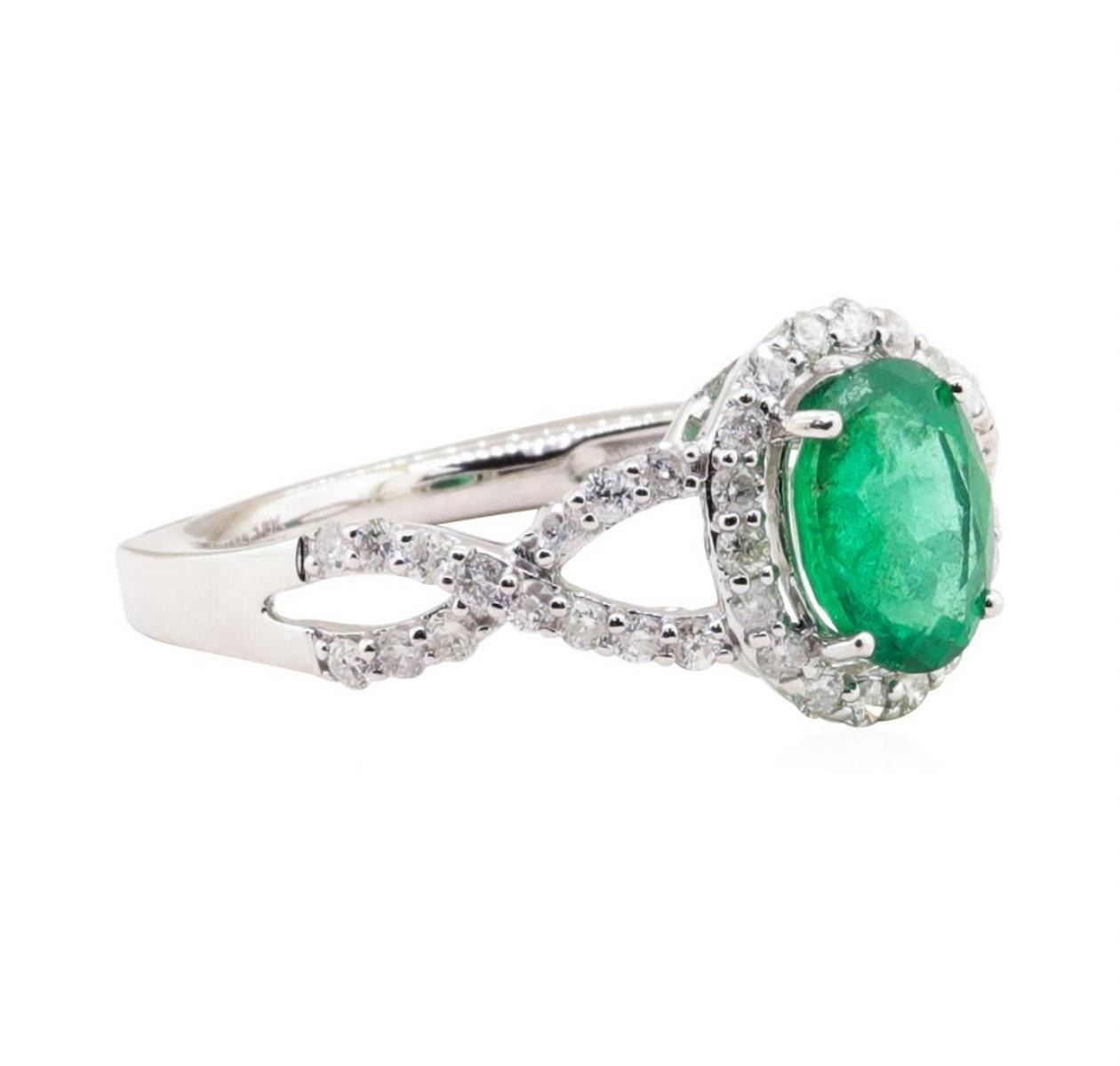 One 1.26ct Emerald and Diamond Ring - 18KT White Gold. AIG certified. See Appraisal for more details. AIG Appraised.