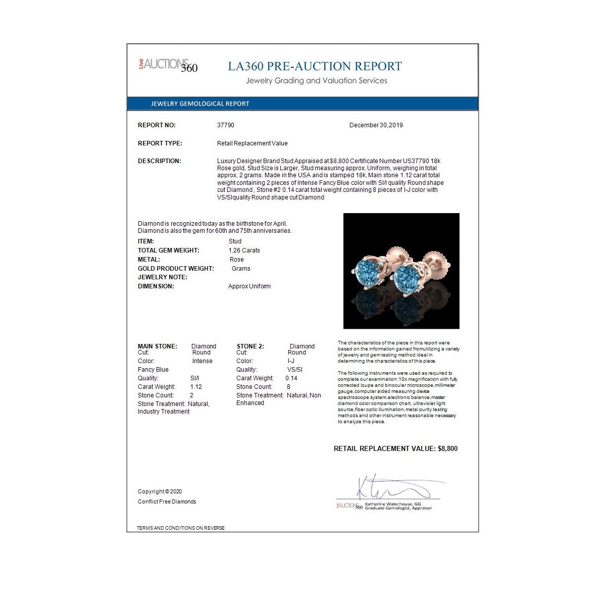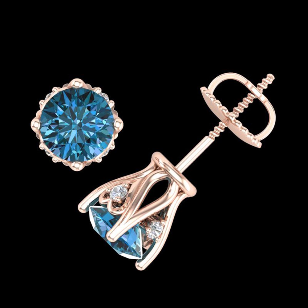 REF-133R3K - SKU: 37790 ---- 1.26 ctw Fancy Intense Blue Diamond Art Deco Earrings 18k Rose Gold