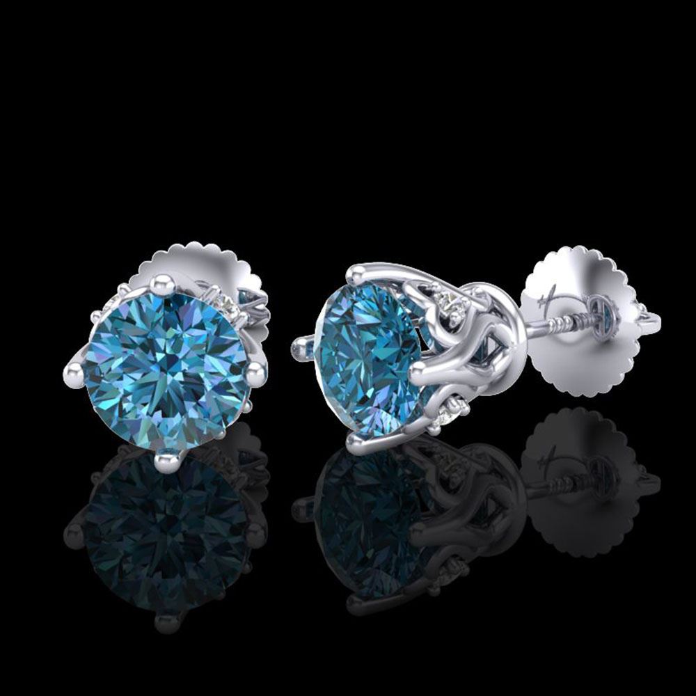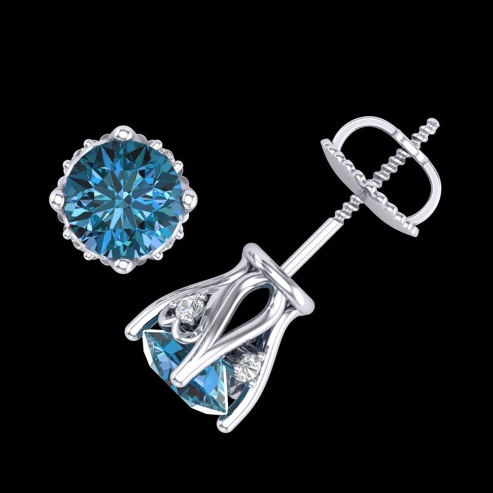REF-133W3H - SKU: 37789 ---- 1.26 ctw Fancy Intense Blue Diamond Art Deco Earrings 18k White Gold