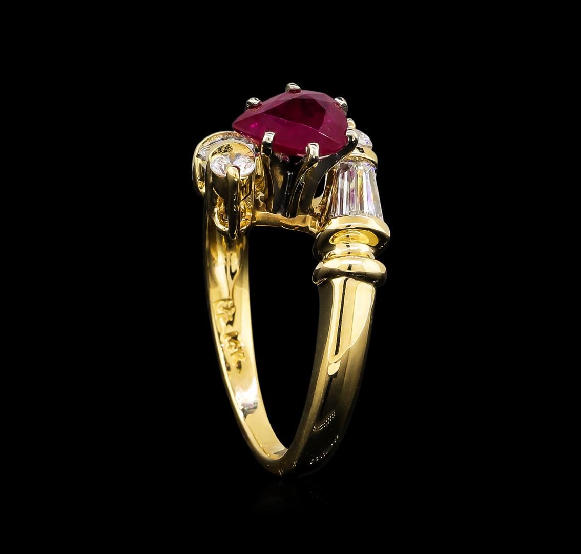 One ring featuring: 14KT yellow gold weighing 5.65 grams containing one ruby with a total weight of 1.26ct and side diamonds with a total weight of 0.80ct.