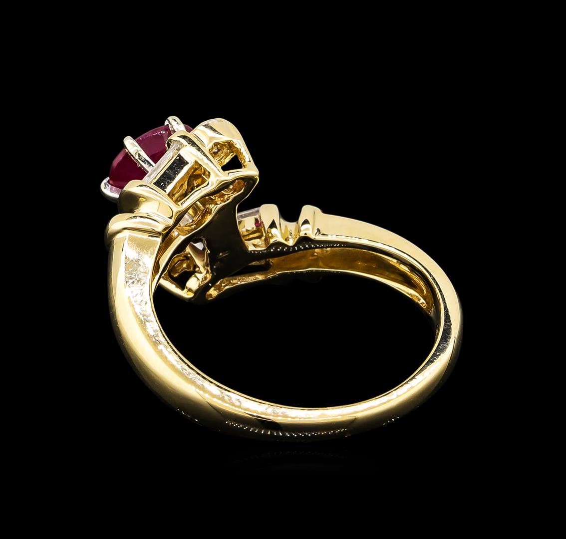 One ring featuring: 14KT yellow gold weighing 5.65 grams containing one ruby with a total weight of 1.26ct and side diamonds with a total weight of 0.80ct.