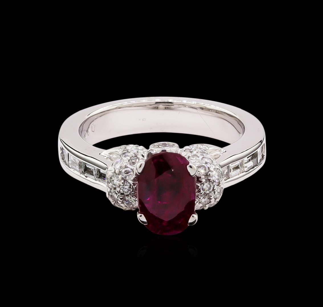 One ring featuring: 18KT white gold weighing 7.50 grams containing one ruby with a total weight of 1.26ct and side diamonds with a total weight of 0.77ct.