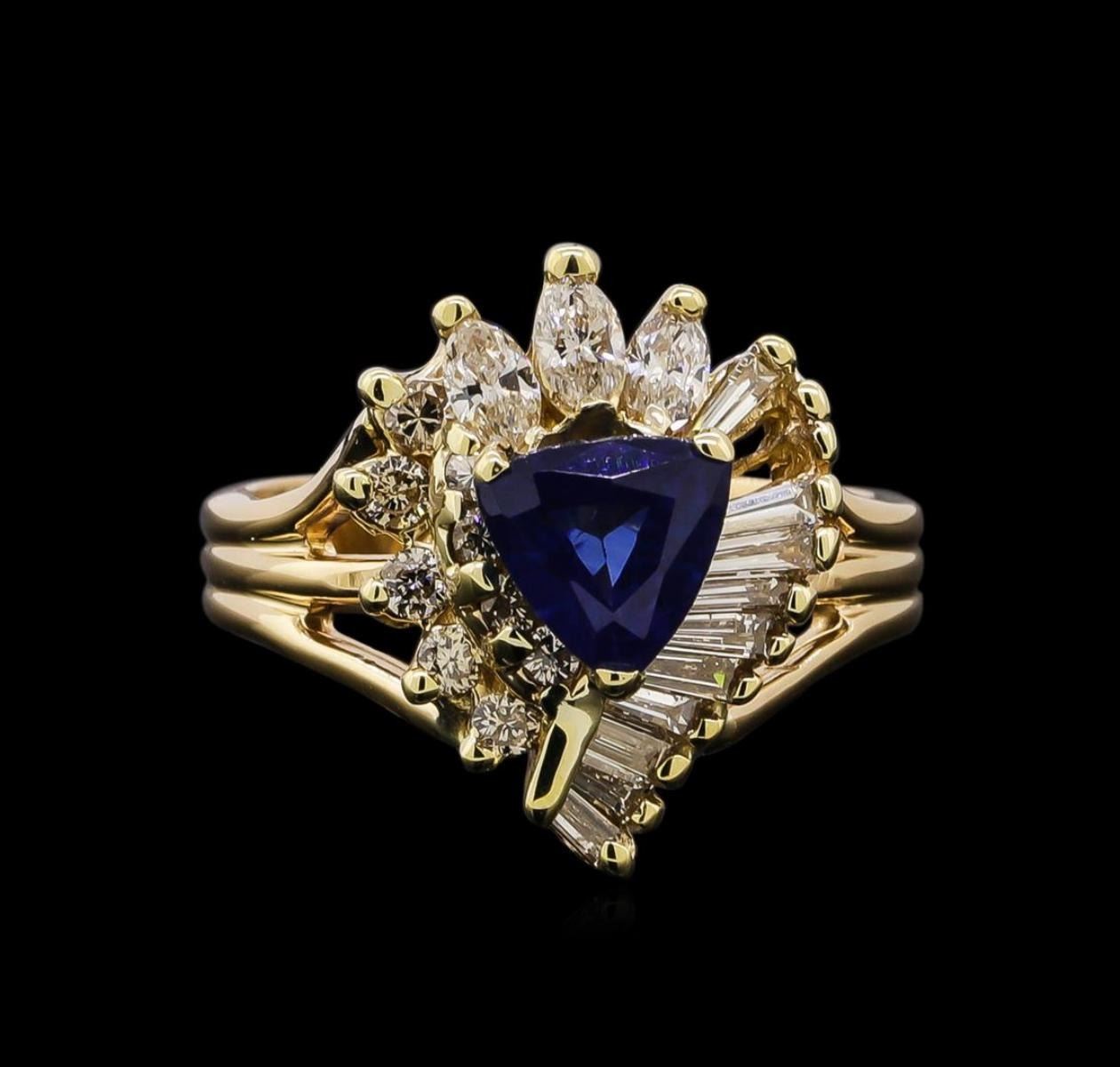 One ring : 14KT yellow gold weighing 5.95gm containing one sapphire with a total weight of 1.26ct and diamonds weighing 1.00ctw.