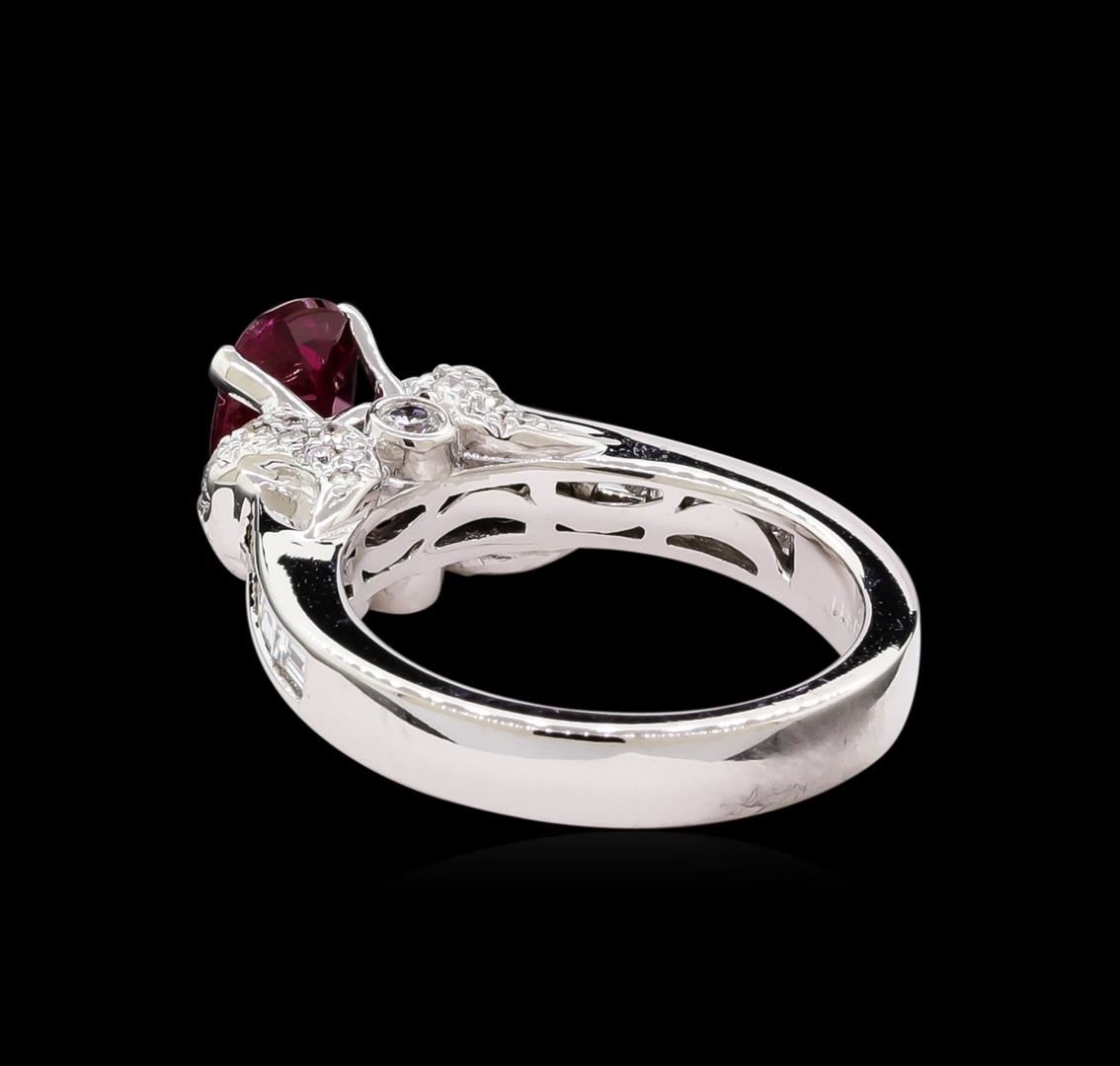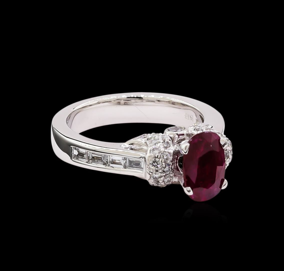 One ring featuring: 18KT white gold weighing 7.50 grams containing one ruby with a total weight of 1.26ct and side diamonds with a total weight of 0.77ct.