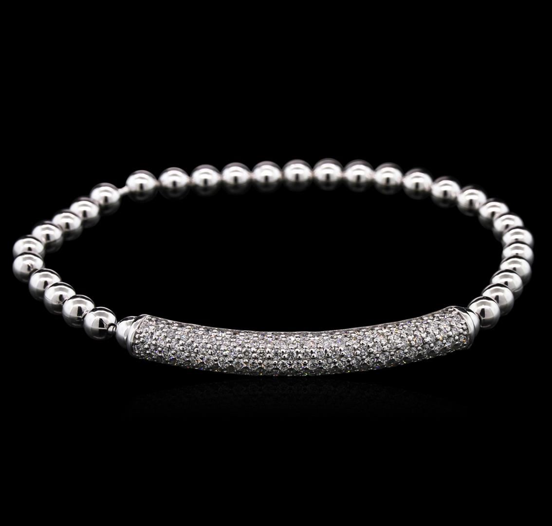 One electronically tested 14KT white gold lady's combination cast & assembled fashion bracelet with a bright polish finish. The featured lady's bracelet measures 6 inches in length and stretches up to 7 inches in length. Identified with markings of "585". Condition is new, good workmanship. Containing: One Hundred Sixty-Four prong set round brilliant cut diamonds, measuring 1.30 - 1.20 x 0.81mm (depth est.) approximate total weight of 164 Stones = 1.27ct. Graded in the setting. Clarity: SI-1 to SI-2. Color: H - I. Cut Good. Total Weight of Diamonds 1.27ct. Total Weight of Bracelet 9.60gm at $5790.00.. GAS Appraised at $5,790.00.