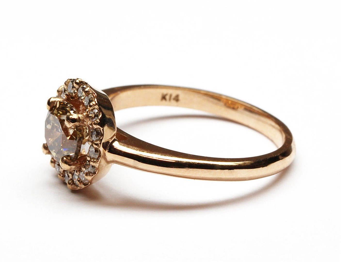 One lady's ring featuring: 14KT rose gold weighing 3.80 grams containing one center diamond weighing 1.04ct and 16 side diamonds weighing 0.23ctw, The center diamond is round brilliant cut with SI1 clarity, I-J color and excellent cut. The side diamonds a