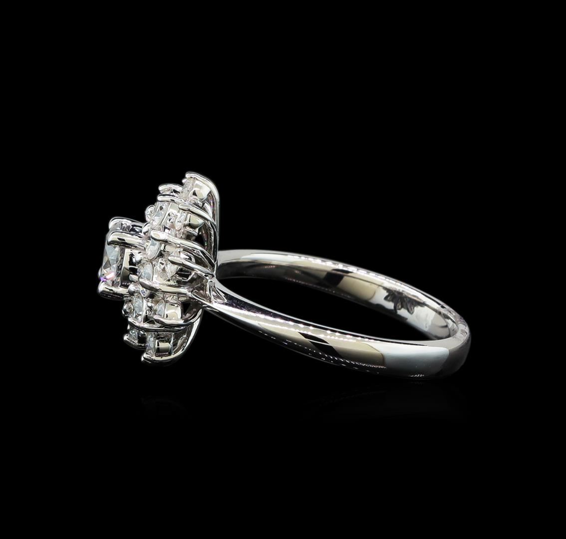 One electronically tested 14KT white gold lady's cast wedding ring with a double basket halo with a bright polish finish. The featured lady's ring has a shank measuring 2.76 millimeters wide. Identified with markings of '14K'. Condition is new, good workmanship. Containing: One prong set round brilliant cut diamond, measuring 5.05 - 5.04 x 3.13mm (depth est.) approximate weight of 0.51ct. Graded in the setting. Clarity SI-2. Color: I Cut Very Good Ten prong set round brilliant cut diamonds, measuring 2.40 - 2.35 x 1.48mm (depth est.) approximate total weight of 10 Stones = 0.51ct. Graded in the setting. Clarity SI-1 to I-1. Color: H - I Cut Good Ten prong set round brilliant cut diamonds, measuring 1.90 - 1.80 x 1.15mm (depth est.) approximate total weight of 10 Stones = 0.25ct. Graded in the setting. Clarity SI-1 to I-1. Color: H - I Cut Good. Total Weight of Diamonds 1.27ct.. Total Weight of Ring 4.50gm. GAS Appraised at $5,670.00.
