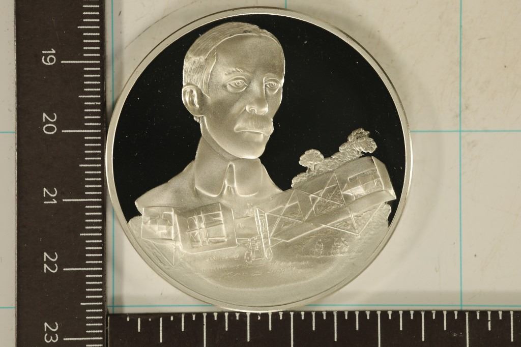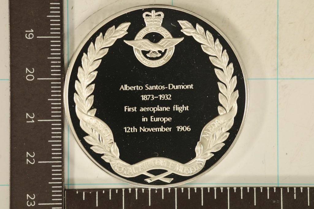 ALBERTO SANTOS-DUMONT (1873-1932) FIRST AEROPLANE FLIGHT IN EUROPE 12TH NOVEMBER 1906. IN HARD PLASTIC CAPSULE