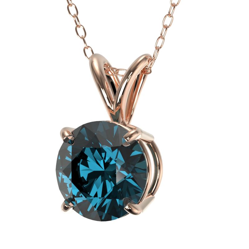 REF-240M2H -36789 ---- 1.28 CTW Certified Intense Blue SI Diamond Solitaire Necklace 10K Rose Gold ---- Luxury Designer Brand Necklace Appraised at $17,600 Certificate Number US36789 10k Rose gold, Necklace Size is 16 Incehs, Necklace measuring approx. Uniform, weighing in total approx. 2 grams. Made in the USA and is stamped 10k, Main stone 1.28 carat total weight containing 1 pieces of Intense Fancy Blue color with SI quality Round shape cut Diamond , Stone #2 carat total weight containing pieces of color with quality shape cut