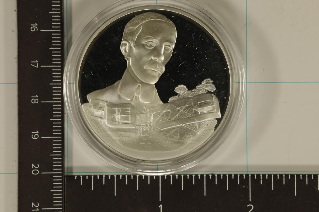 ALBERTO SANTOS-DUMONT (1873-1932) FIRST AEROPLANE FLIGHT IN EUROPE 12TH NOVEMBER 1906. IN HARD PLASTIC CAPSULE