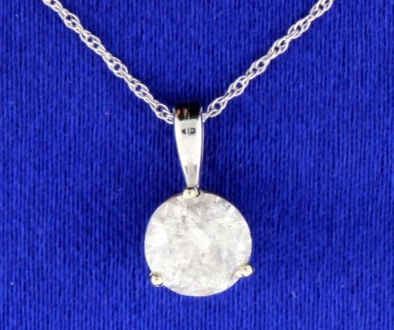 This exquisite 1.28 carat round brilliant cut diamond sits in a 14k white gold martini style drop solitaire pendant and is fabulous!! The diamond is I1 clarity and the color is H. The chain measures 18" and is also 14k white gold. This piece is perfect for everyday wear and is a true gorgeous classic! 1.4g
