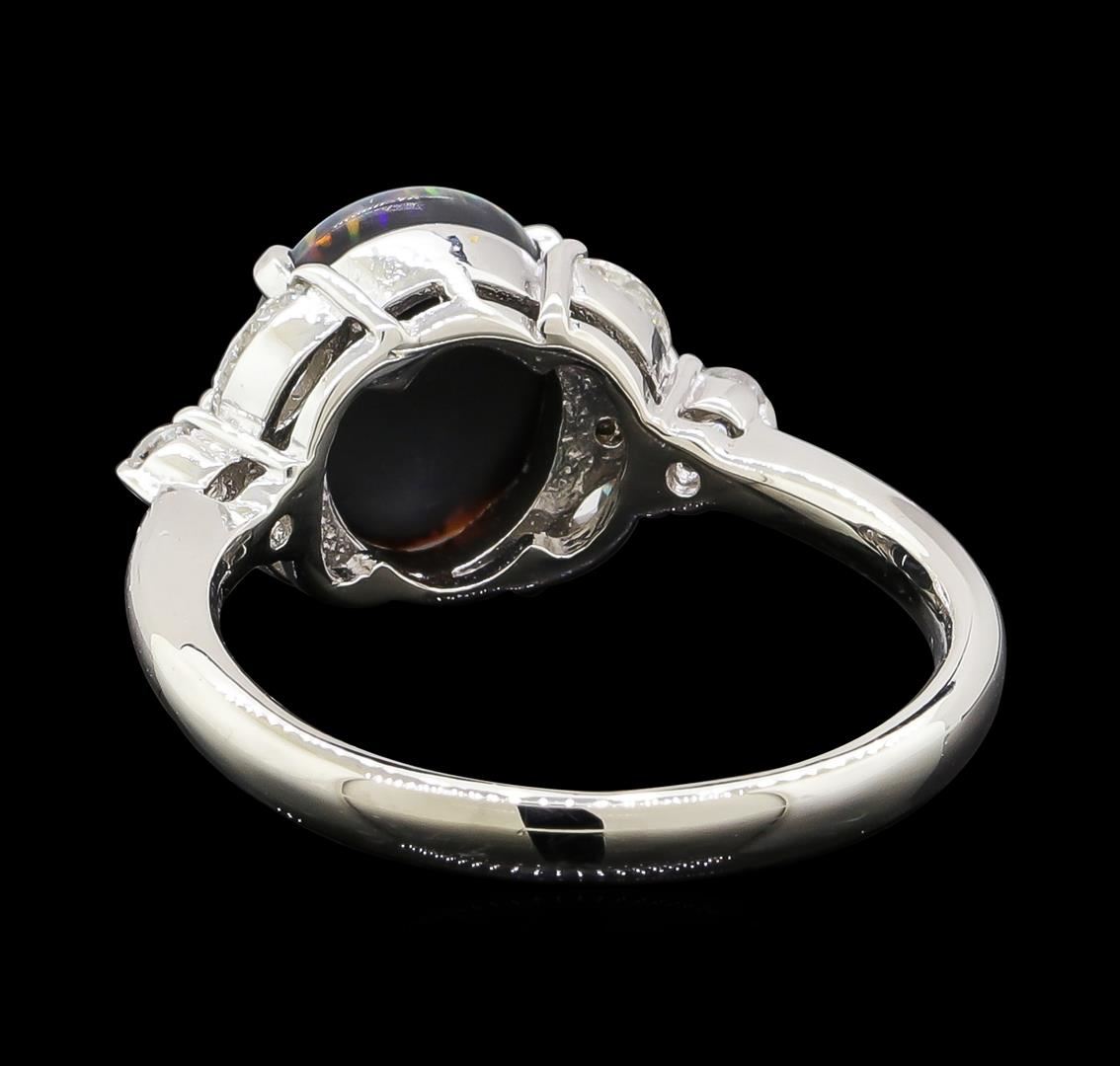 One ring featuring: Platinum containing Black Opal with a total weight of 1.28ct and Diamonds with a total weight of 0.34ct. Total Weight of Ring: 6 grams.