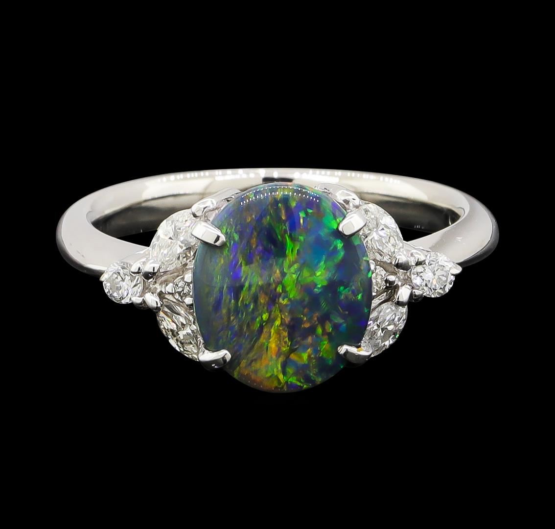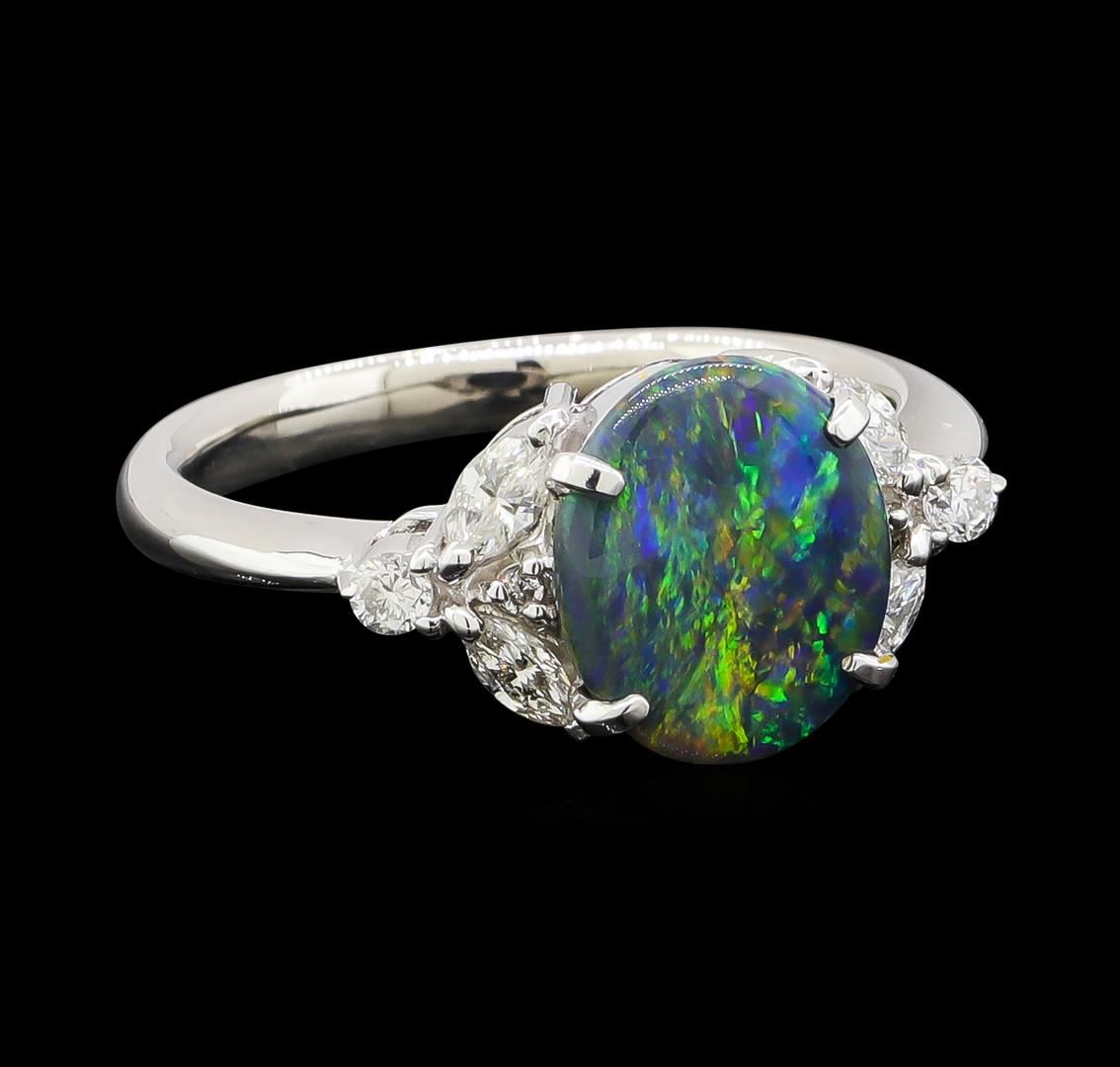 One ring featuring: Platinum containing Black Opal with a total weight of 1.28ct and Diamonds with a total weight of 0.34ct. Total Weight of Ring: 6 grams.