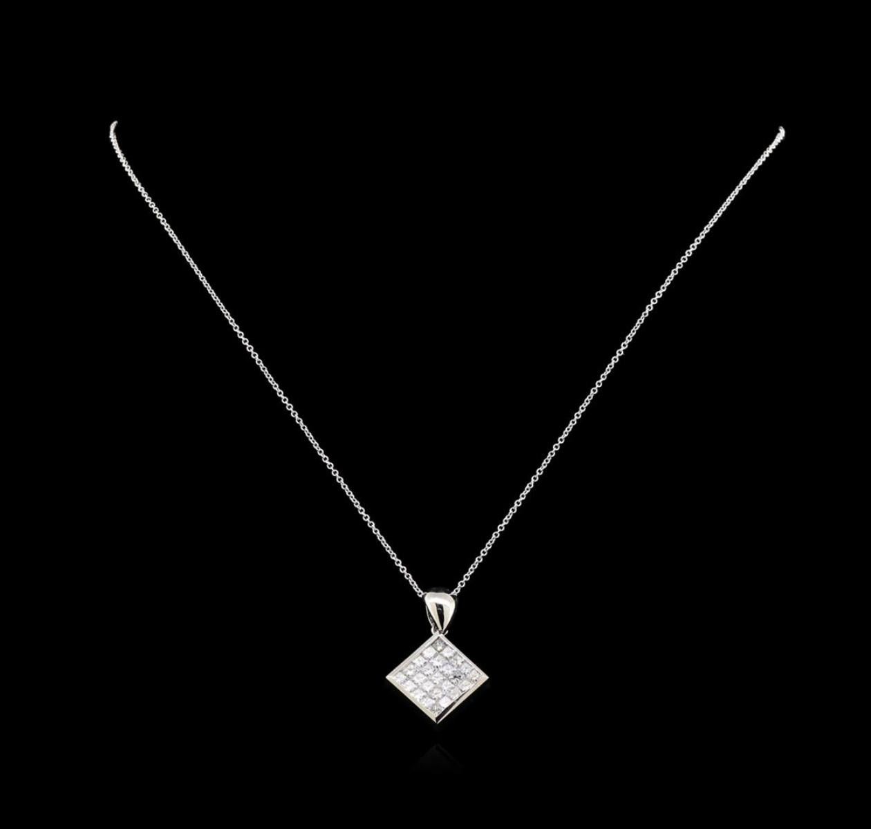 One pendant with chain featuring: 14KT white gold weighing 5.80 grams containing diamonds with a total weight of 1.28ct.