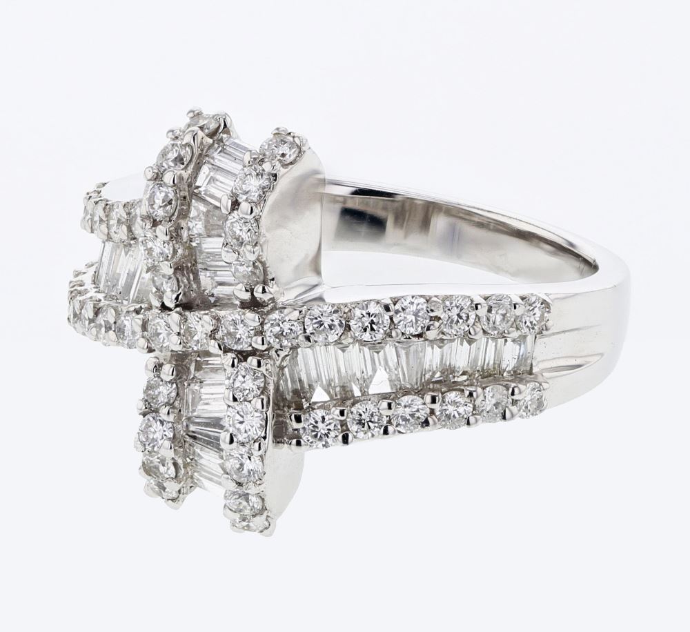 REF-134K5W - JF210680 ---- 1.29 CTW White Round Diamond & Baguette Ring 18K White Gold