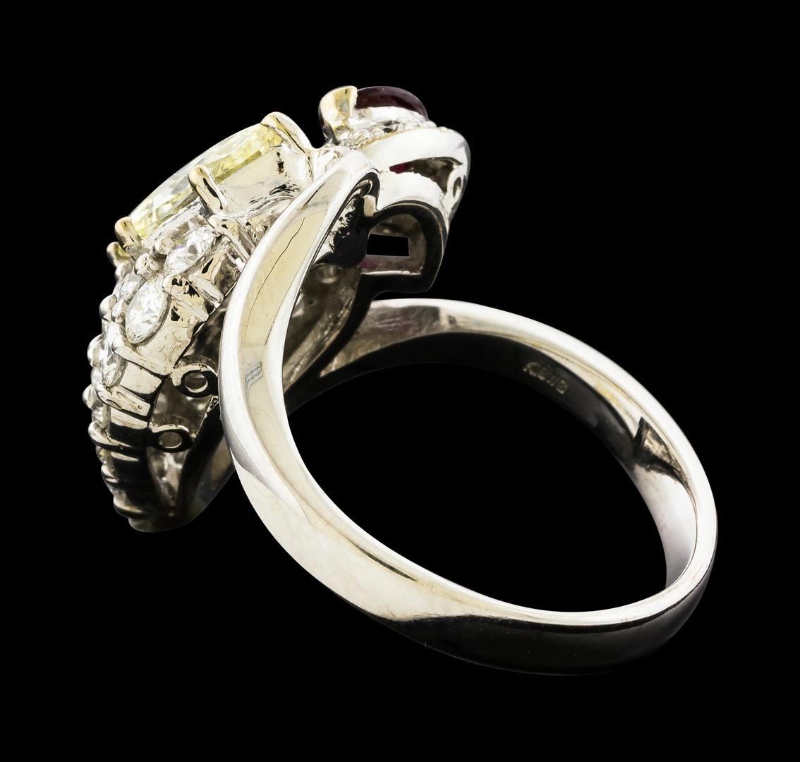 One ring featuring: Platinum containing Diamonds with a total weight of 1.29ct, Diamonds with a total weight of 1.02ct, and Ruby with a total weight of 0.36ct. Total Weight of Ring: 7.1 grams.