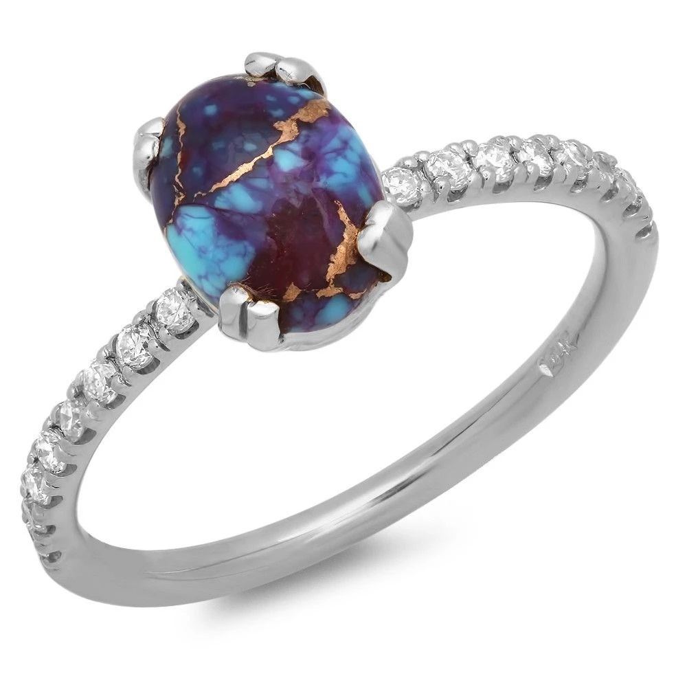 1.2ct Copper Turquoise 14 K White Gold Ring