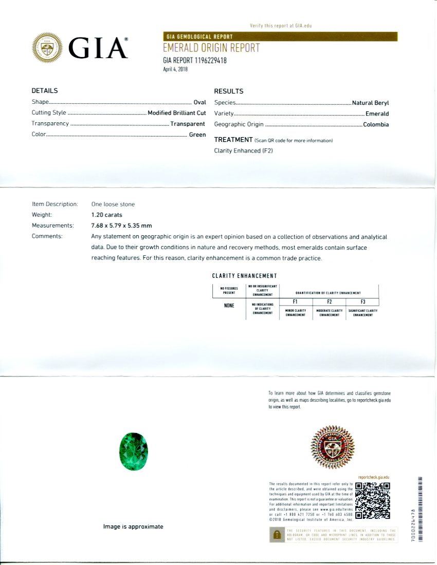 One 1.2ct GIA Certified Colombian Emerald Gemstone.