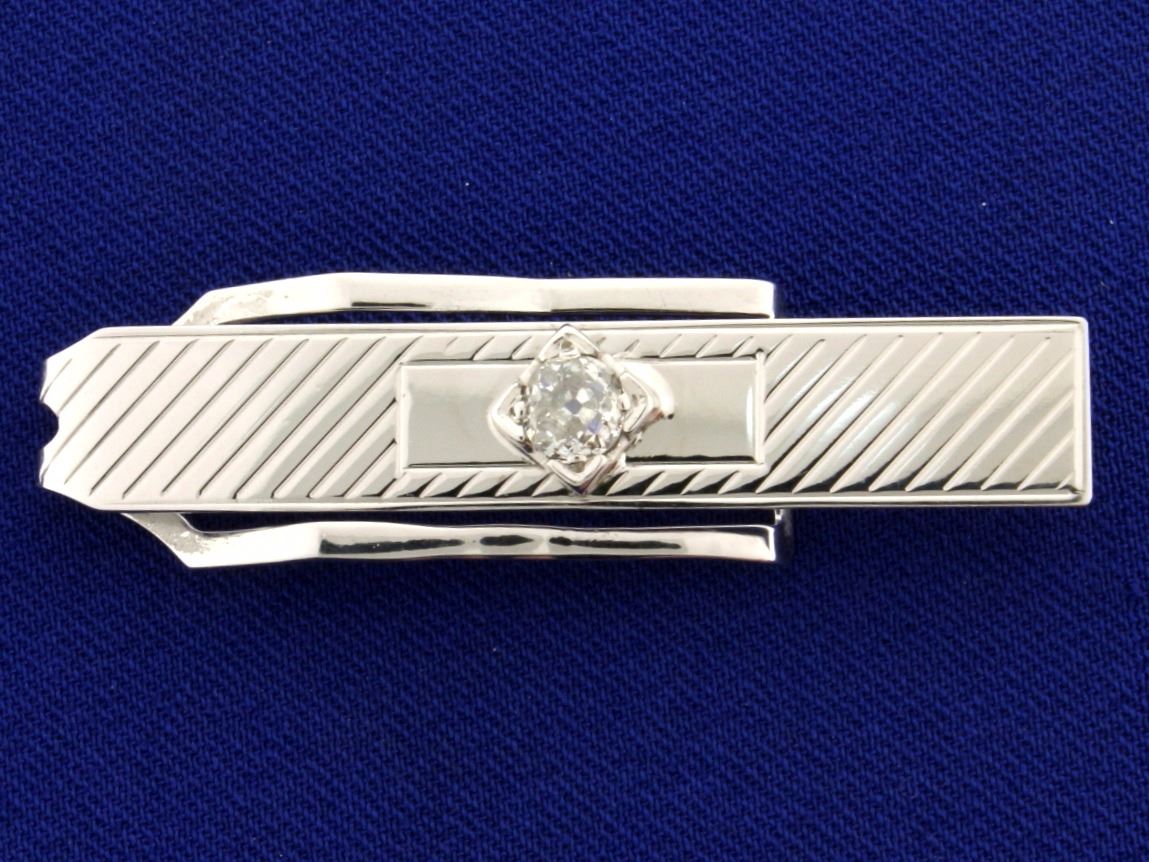 In 10k white gold. Diamond is a high quality mine cut with SI clarity/G color. 1 7/8 inches long. 4.1g.