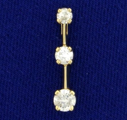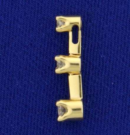 In 14K Yellow Gold. Contains three high quality Diamonds - one .25ct, one .15ct, and one .1ct, all SI clarity/I color with lots of sparkle. 3/4" long. 1.1g