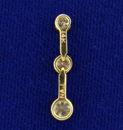 In 14K Yellow Gold. Contains three high quality Diamonds - one .25ct, one .15ct, and one .1ct, all SI clarity/I color with lots of sparkle. 3/4" long. 1.1g