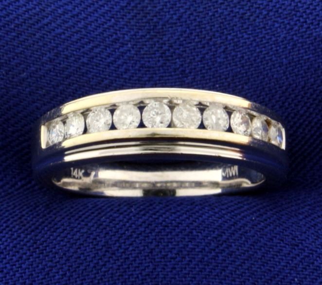 In 14k white and yellow gold. Contains ten high quality .05ct diamonds, SI clarity/H color. Size 7 1/4. 4.9g.