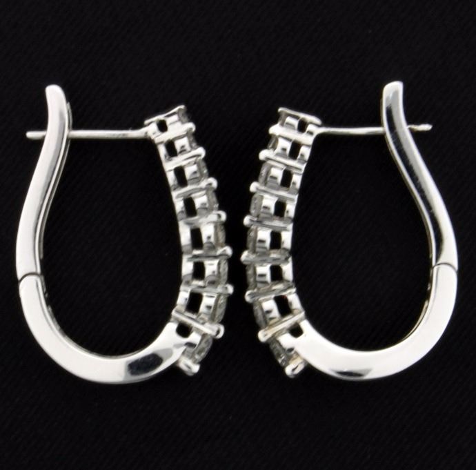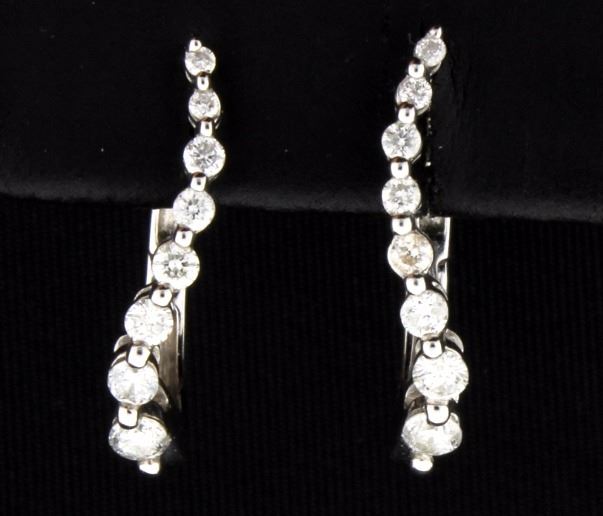 In 14K white gold, they are 3/4 inch long. Each earring contains a .07ct, .06ct, two .03ct, two .02ct and two .01ct round high quality diamonds - SI clarity/H color.          3.5g