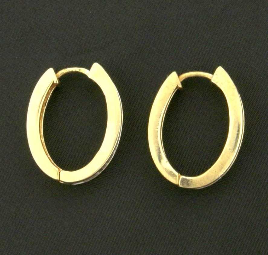 In 14k yellow gold, containing 1/2ct TW of high quality round brilliant diamonds of I clarity/I color. 7/8" long. 5.7g.