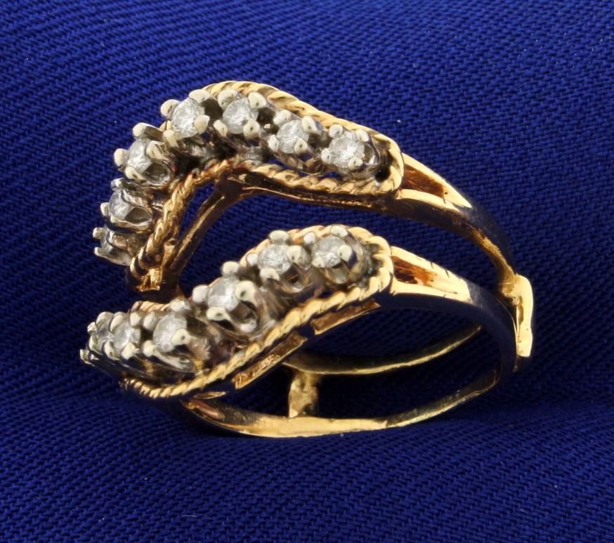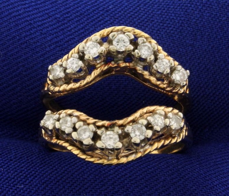 In 14k yellow and white gold, containing 1/2ct TW of high quality diamonds with SI clarity/H color. Size 8 1/2. 7.3g.