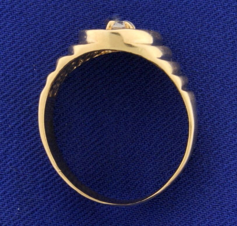 In 14k yellow gold. Center diamond is a high quality .15ct diamond surrounded by twelve .03ct diamonds. All of SI clarity/G color with lots of sparkle. Size 9 1/2. 6.5g.