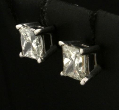 In 14k white gold. Diamonds are high quality SI1 clarity/I color. Eye clean with great sparkle. Friction backs. 1.2g.