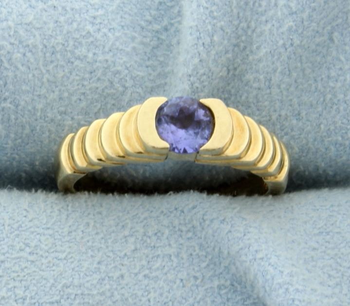 14K yellow gold, this ring contains 1/2ct gemstone-with excellent purple color and clarity. Size 6 1/4 3.9g