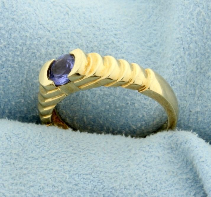 14K yellow gold, this ring contains 1/2ct gemstone-with excellent purple color and clarity. Size 6 1/4 3.9g