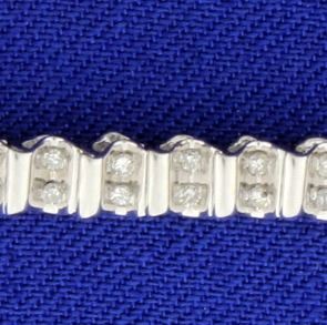 This bracelet is 10K white gold and contains 1.2ct total weight of diamonds. The bracelet is 7 1/2 inches long and has a safety clasp. 8.8g