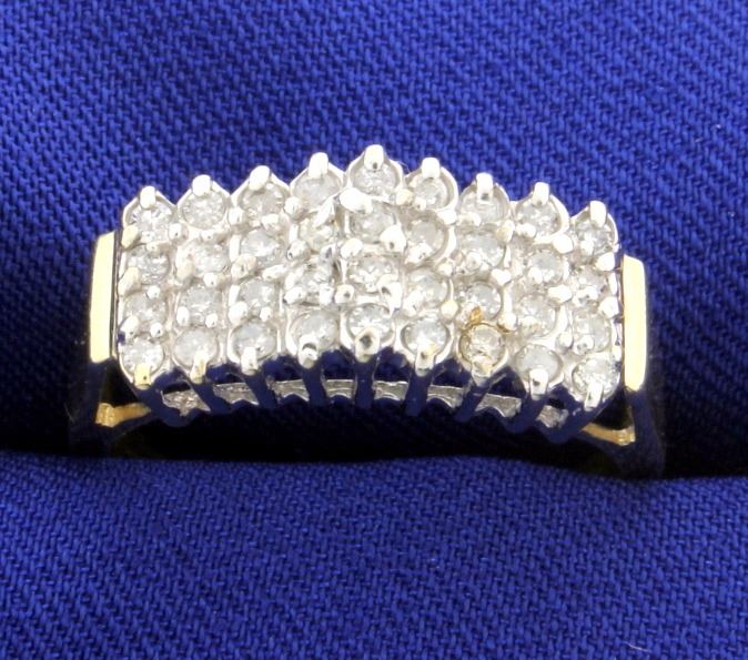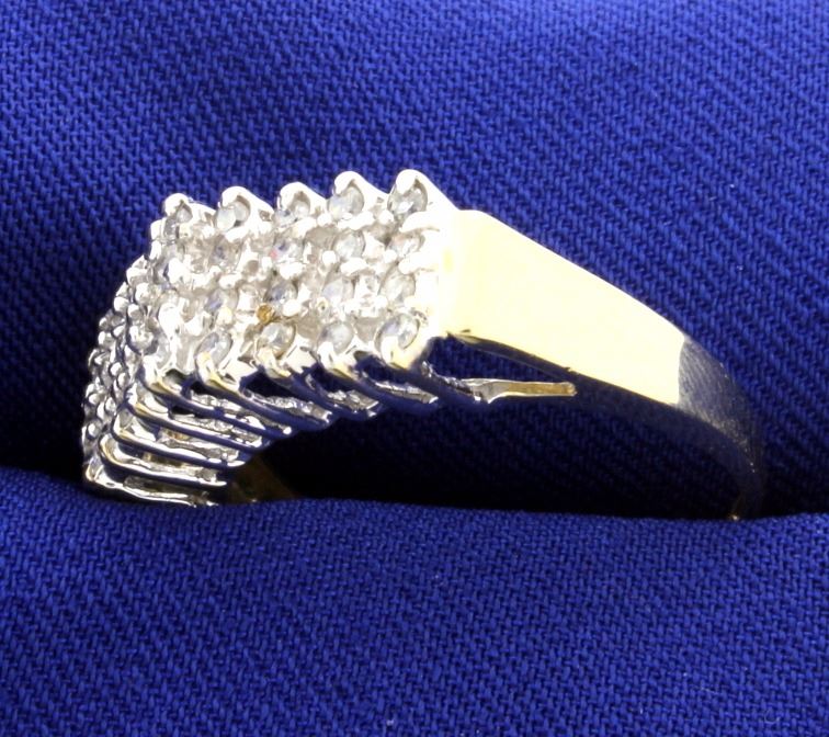 In 10K yellow & white gold, there is 1/2ct total weight of diamonds with I clarity/ I color. Size 9 3.2g