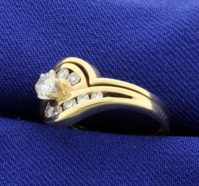 In 14K yellow gold, the center diamond is .2ct, surrounded by .3ct of round diamonds ranging from .02 to .04ct-all very high quality VS clarity/F color. Size 5 1/2 4.1g