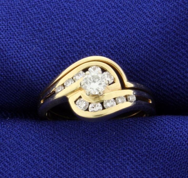 In 14K yellow gold, the center diamond is .2ct, surrounded by .3ct of round diamonds ranging from .02 to .04ct-all very high quality VS clarity/F color. Size 5 1/2 4.1g