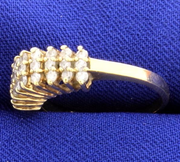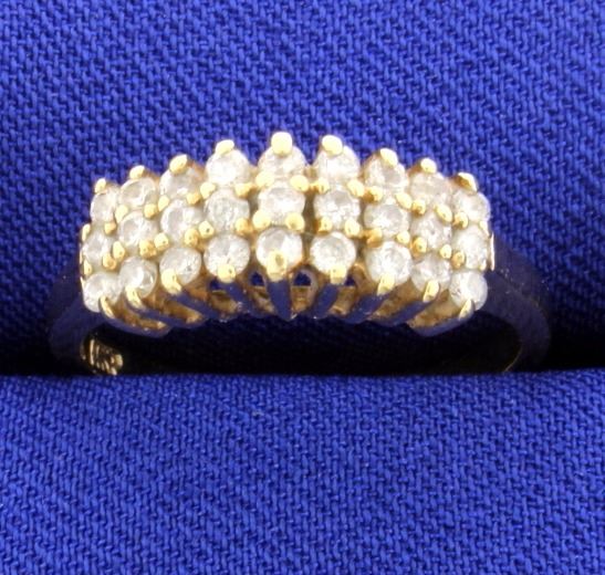 14K yellow gold, this ring has 27-.02ct diamonds that are I clarity, H color. Size 6.5 3.1g