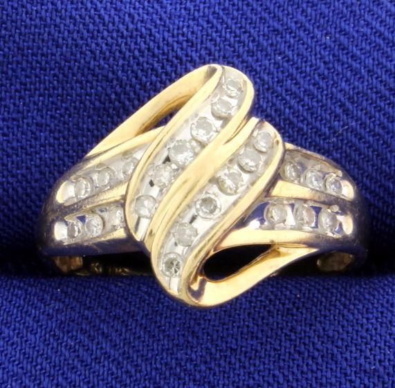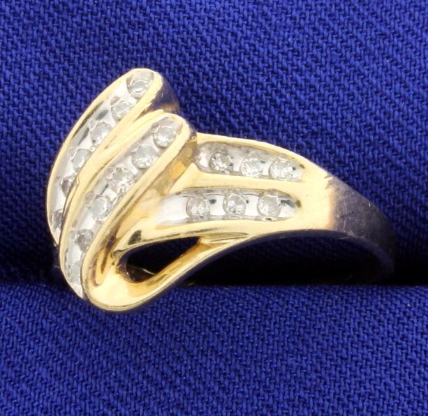10K yellow & white gold, there are twenty four .02ct diamonds with I color, I clarity. Size 7 1/2 2.8g