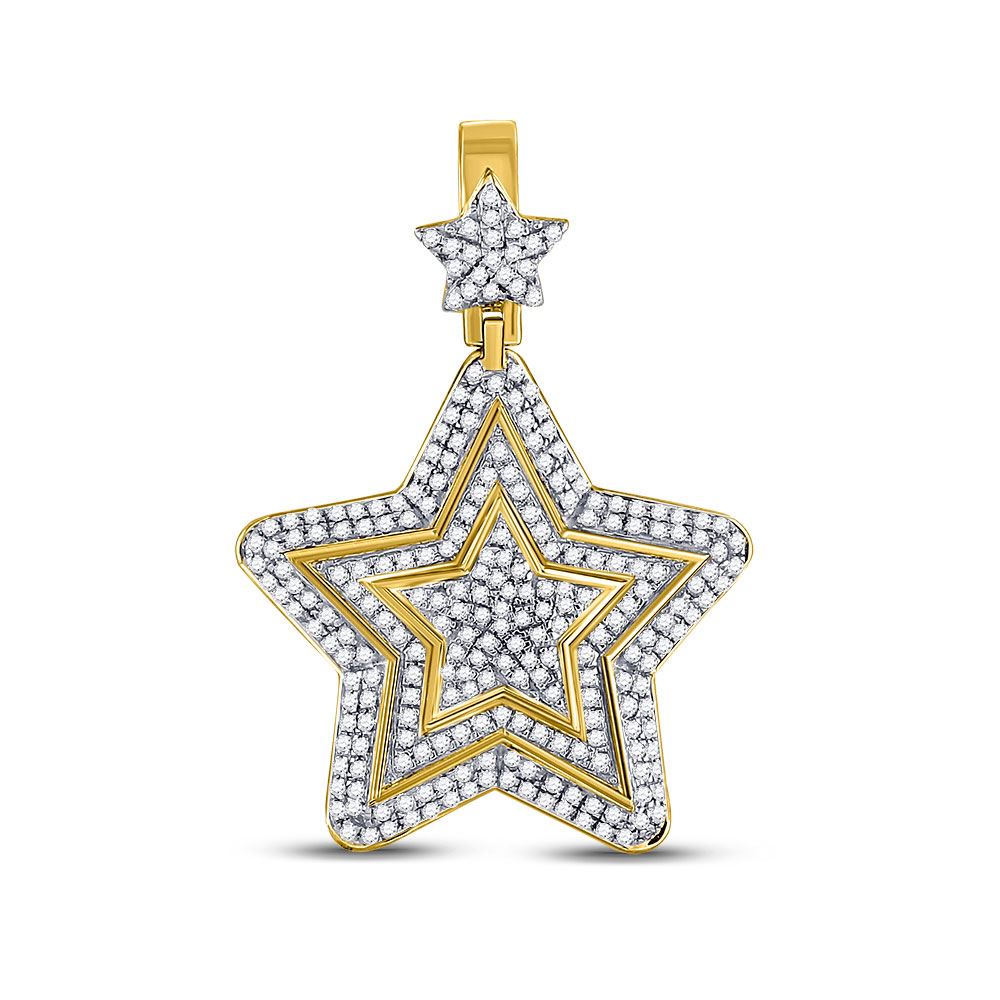 10kt Yellow Gold Mens Round Diamond Concentric Star Charm Pendant 1-3/4 Cttw