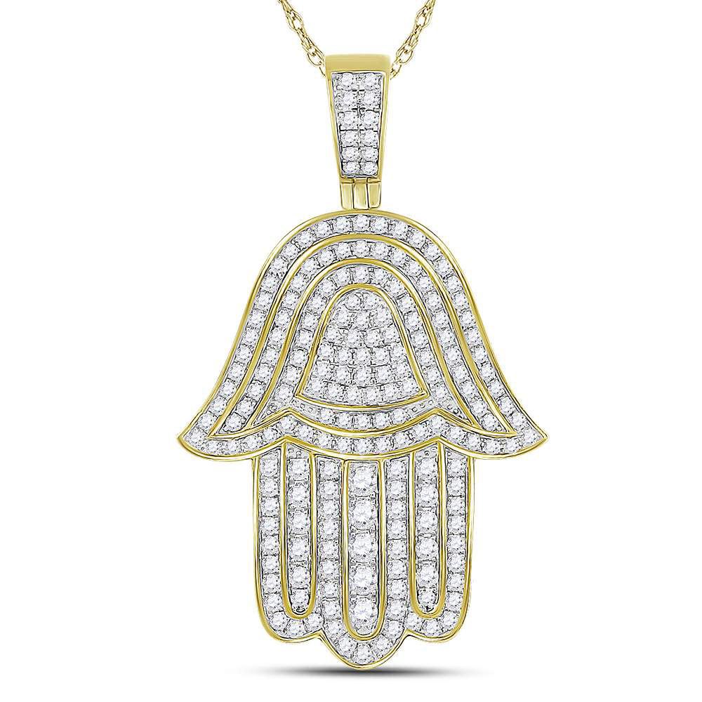 REF-118Y6N - 1 & 3/4 CTW Mens Round Diamond Hamsa Hand Charm Pendant 10kt Yellow Gold - REF-118Y6N