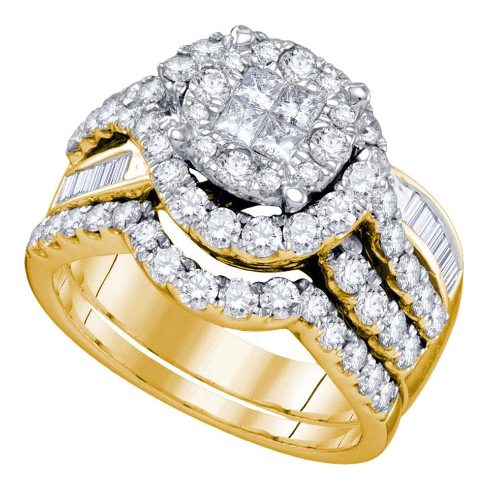 REF-177W3H - 1 & 3/4 CTW Princess Round Diamond Bridal Wedding Ring 14kt Yellow Gold - REF-177W3H