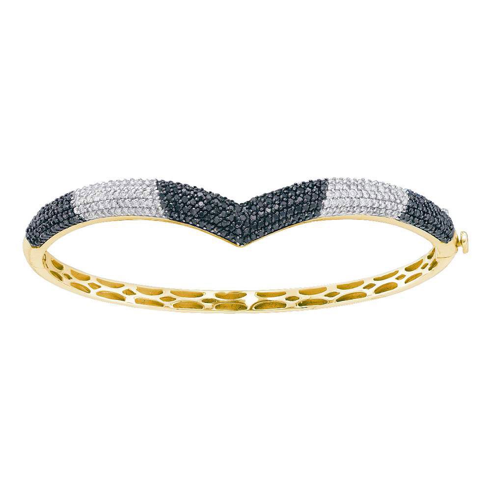 14kt Yellow Gold Womens Round Black Color Enhanced Diamond Bangle Bracelet 1-3/4 Cttw